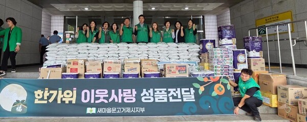 새마을문고 거제시지부(회장 신종엽)가 지난달 한가위 명절을 앞두고 지역 내 어려운 이웃들을 위한 따뜻한 나눔 활동을 펼쳐 훈훈한 감동을 선사했다. 270만 원 상당의 ‘이웃사랑 성품’이 지역 관내 소외계층에게 전달되며 이웃사랑을 실천했다.