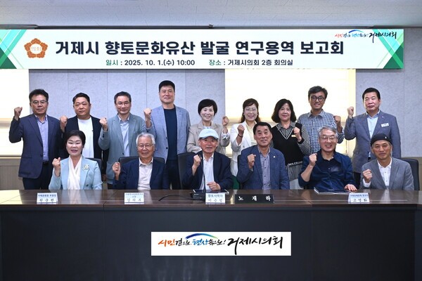 거제시의회 의원 연구단체인 ‘거제역사관광연구회’(회장 노재하 의원)는 지난 1일 거제시의회 2층 회의실에서 ‘거제시 향토문화유산 발굴 연구용역’ 최종보고회를 개최했다.