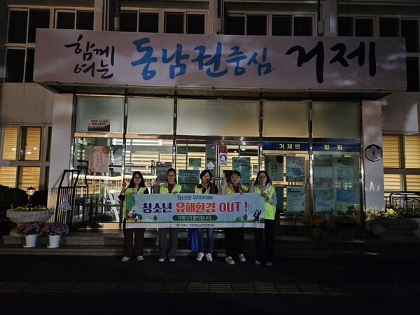거제면 청소년 지도위원회(위원장 정주현)는 지난 10월 30일 저녁 2025년 중간고사 후 거제제일중학교 일대를 돌면서 청소년 유해환경 점검·단속 활동을 했다.