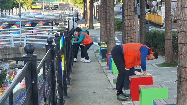 아주동 주민자치회, 서당골천 빛축제 앞두고 환경정화
