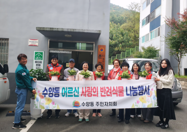 수양동 주민자치회(회장 이경호)는 지난 12일 수양동 내 경로당 12곳을 방문해 ‘반려식물 나눔행사’를 개최했다.