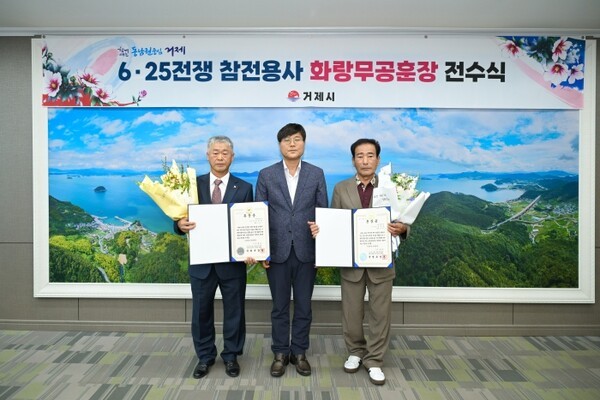 거제시는 1일 6·25전쟁 참전용사 故 유현규 하사 조카 유호준 님과 故 윤중원 병장 자녀 윤종습 님께 화랑무공훈장을 전수했다.