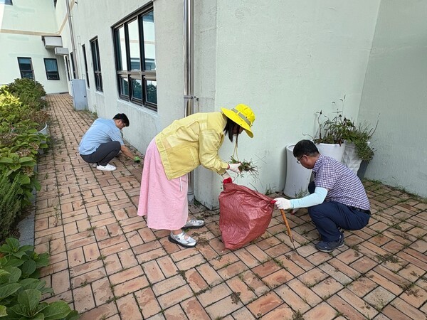 '잡초 안녕!' 상문동 주민센터 직원들 구슬땀
