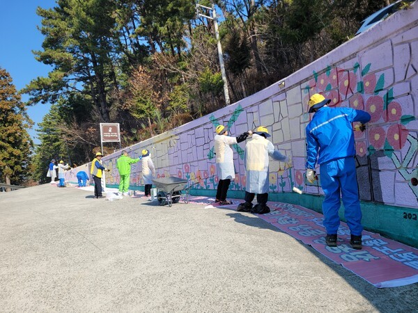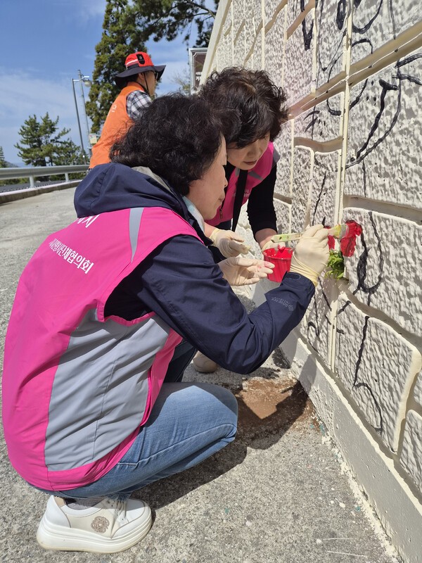 이번 프로젝트는 지역 내 민간 봉사단체들의 체계적인 협업으로 이루어졌다. 먼저 지난 3월 21일, ‘다함께차차차봉사단(단장 박부춘)’ 회원들이 벽면 정리와 정성스러운 바탕 작업을 진행해 벽화가 그려질 소중한 기초를 탄탄히 다졌다.
