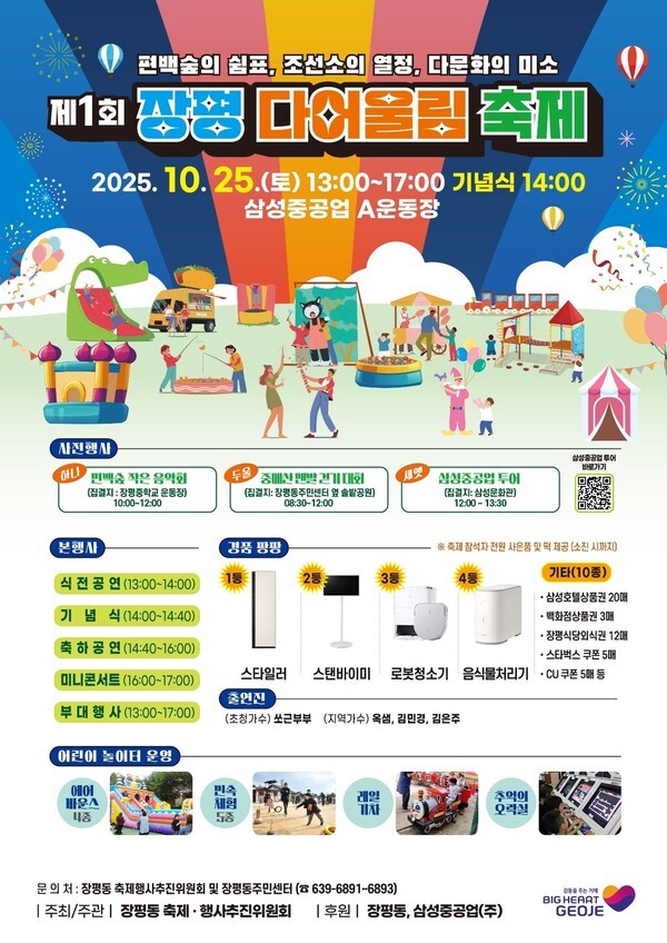 거제시 장평동 축제·행사추진위원회는 ‘제1회 장평 다어울림 축제’를 오는 25일 삼성중공업 A운동장에서 개최한다고 밝혔다.