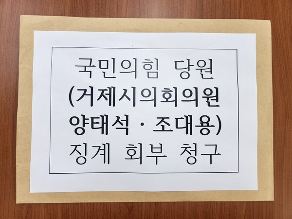 거제시의회 국민의힘 소속 김동수 원내대표를 비롯한 5명의 의원(김동수·윤부원·정명희·김영규·김선민)은 2일 국민의힘 거제시당원협의회에 양태석·조대용 의원에 대한 징계 회부 청구서를 제출했다고 밝혔다.