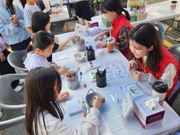 어린이들을 대상으로 ‘씨글라스 액자 만들기’ 체험을 진행, 버려진 유리조각을 활용한 작품을 만들면서 환경보호와 재활용의 의미를 자연스럽게 전달했다.