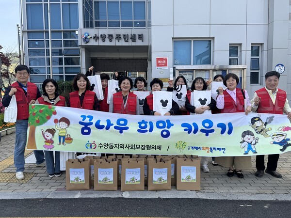수양동지역사회보장협의체(공공위원장 양정순, 민간위원장 김나윤)는 지난 21일 지역 내 어려운 이웃을 살피고 아동들의 건강한 성장을 지원하기 위해 행복디딤돌 특화사업인 ‘꿈나무 희망 키우기’를 추진했다.