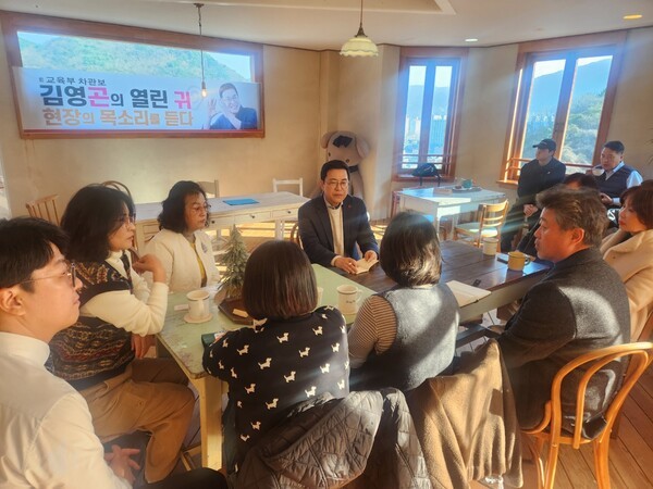김영곤 전 교육부 차관보가 거제시를 찾아 ‘다시 현장 속으로’ 타운홀 미팅을 열고, 지역 주민들의 교육 현안을 직접 청취했다.