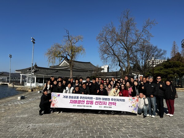 장승포동 주민자치회(회장 정영한)가 지난 15일, 자매결연지인 합천군 대병면 주민자치회(회장 하상도)와 경상북도 경주시 일원에서 합동 선진지 견학을 했다.