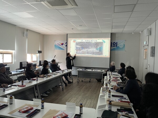 이날 교육은 이인범 강사를 초청해 진행됐으며, 거제시 자원순환시설의 현황을 비롯해 텀블러 사용 등 1회용품 줄이기 실천 방법, 음식물 쓰레기 감량 요령 등을 중심으로 교육이 이뤄졌다.