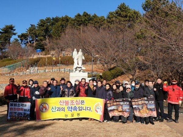 능포동(동장 홍승철)은 2일 새해를 맞아 양지암공원 일원에서 능포동통장협의회, 주민자치회, 능포동 기관·단체장 등 30여 명이 참석한 가운데 산불 방지 캠페인을 했다.