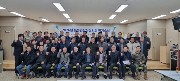 동부면 발전협의회(회장 박정대)는 지난 14일 동부면 참살이센터 3층 회의실에서 ‘2026년 동부면 발전협의회 정기총회’를 개최했다고 밝혔다.