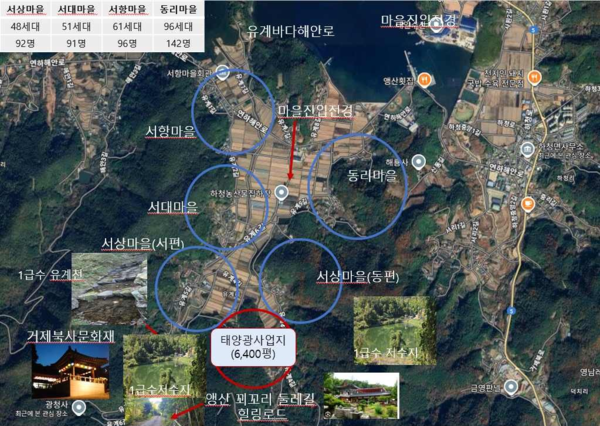 앞서 사업자 측은 지난 2일 설명회에서 18억여원을 들여 하청면 유계리 332번지 일원 2만1205㎡(6415평)에 2027년까지 '3차'에 걸쳐 1972.8KW 규모의 태양광 발전시설을 설치할 계획을 밝혔다.