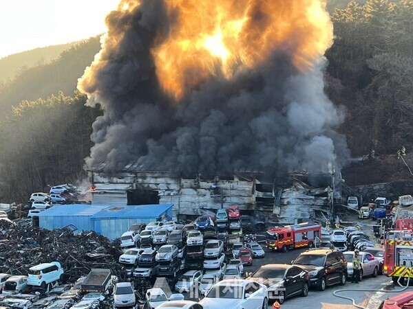 12일 경남소방본부에 따르면 12일 오전 7시 52분쯤 거제시 장평동 폐차장에서 불이 났다.