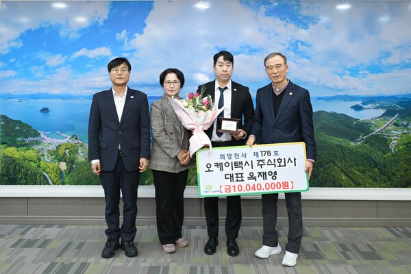 오케이택시 주식회사(대표 옥재영)는 15일 (재)거제시희망복지재단(이사장 이화수)에 1,004만원을 기탁해 희망천사 제178호가 됐다.