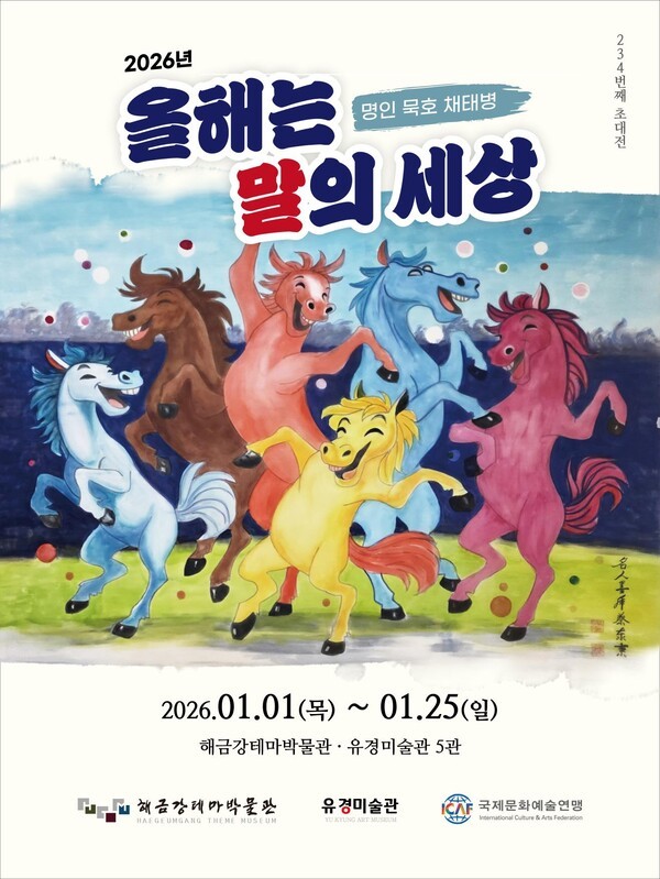 해금강테마박물관·유경미술관(관장 경명자·유천업)은 1월 1일부터 1월 25일까지 해금강테마박물관 내 유경미술관 5관에서 유경미술관 234회 초대전 한국 국적 채태병 작가의 ‘올해는 말의 세상’ 展을 개최한다.